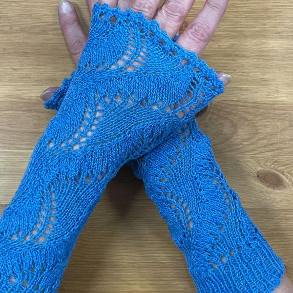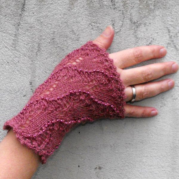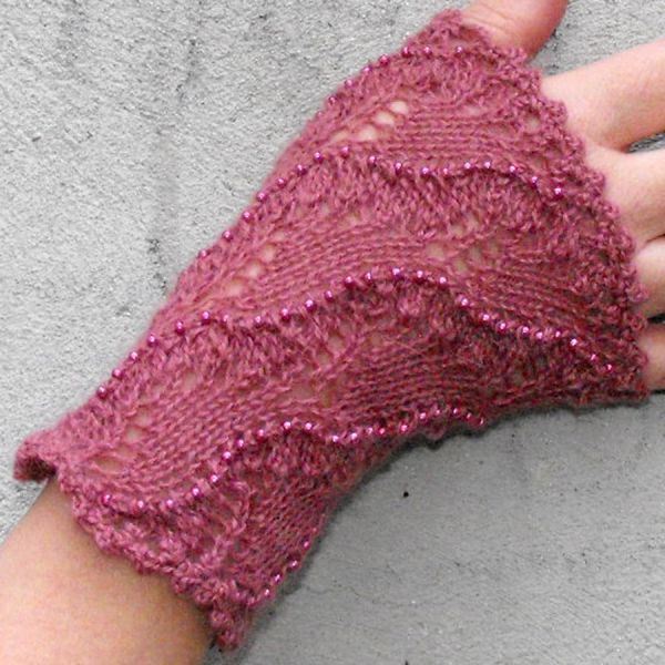 Eine elegante Armstulpe mit Perlen und einem schönen Abschluss. Strickanleitung mit Strickschrift.