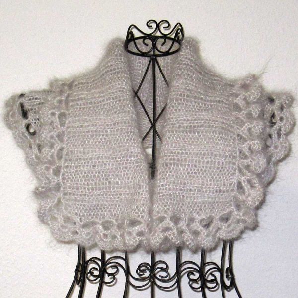 Der Schalkragen *Maruschka* kann nach Lust und Laune auf verschiedene Weisen getragen werden und sieht besonders toll aus haarigem Accessoiregarn aus. Das Innenleben wird gestrickt und die Spitze gehäkelt. Strickanleitung mit Häkelschrift.