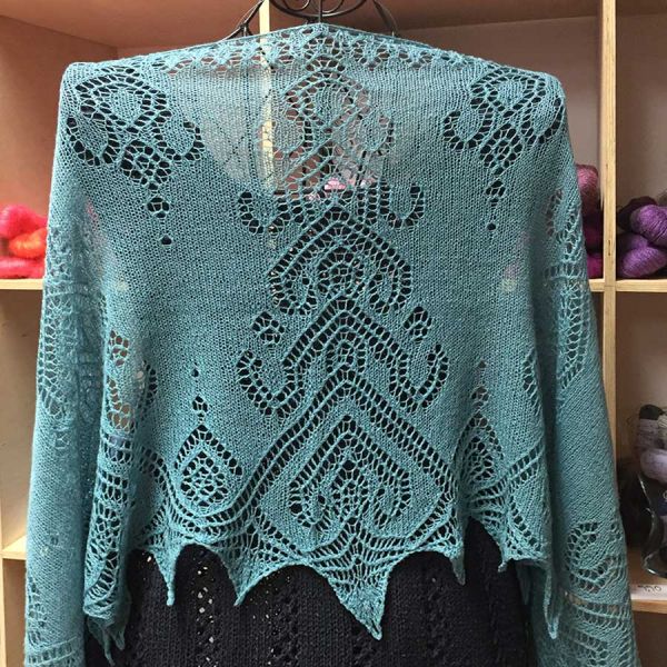 Gestrickte Stola mit Strickspitze *BellaRoque*. Eine romantische Stola - an einem Stück gestrickt. Strickanleitung mit Strickschrift.