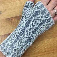 Die Armstulpe *Myxella* hat ein verspieltes Muster im Stil von Matrix mit verkreuzten Hebemaschen. Obwohl das Muster eindrucksvoll aussieht, ist es einfach zu stricken: In jeder Runde wird nur mit einer Farbe gearbeitet. Die Farbe wechselt nach jeder Runde. Die Verkreuzungen gehen über zwei Maschen und können ohne zusätzliche Hilfsnadel gearbeitet werden. Anleitung mit Strickschrift.